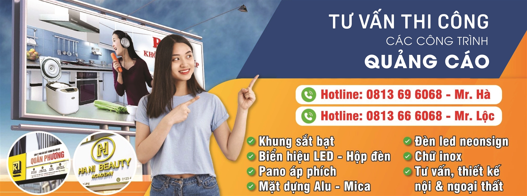 Tam Thắng chuyên thiết kế, thi công bảng hiệu quảng cáo, hộp đèn, chữ nổi, đèn LED, mặt dựng và các hạng mục nội – ngoại thất theo yêu cầu.